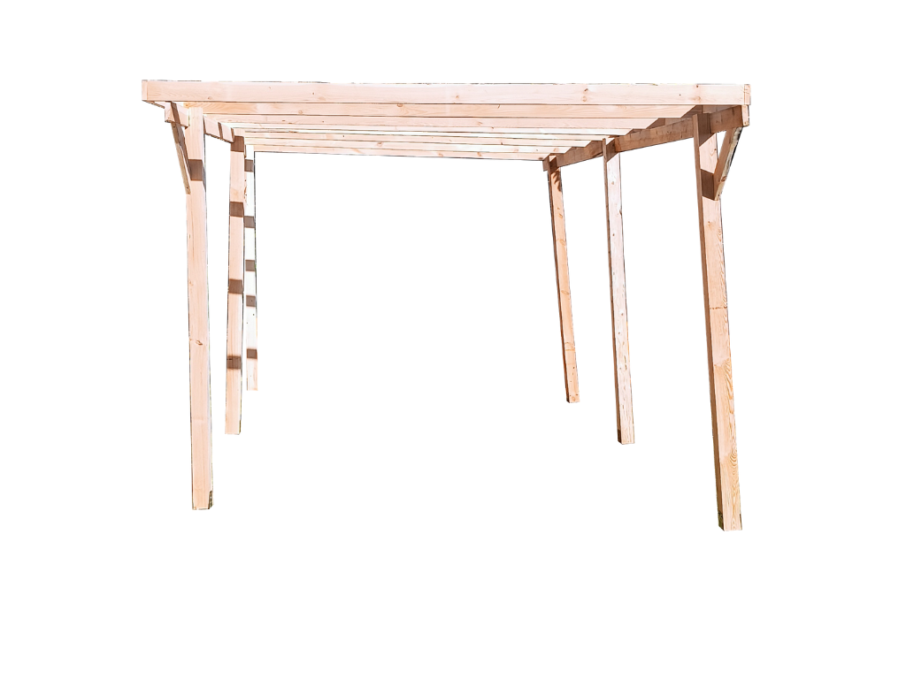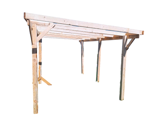 Ta przestronna wiatę garażowa stanowi idealne rozwiązanie dla osób poszukujących bezpiecznego miejsca do przechowywania swojego pojazdu lub narzędzi. Jej imponujący rozmiar o wymiarach zewnętrznych 300 cm na 500 cm zapewnia wystarczającą przestrzeń dla samochodu, motocykla lub innych przedmiotów, które chcesz zabezpieczyć przed warunkami atmosferycznymi.deski na belki nie są heblowane.cechy drewna oraz warunki oferty